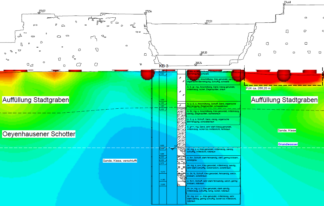 Fragestellung: Ermittlung der Dammhomogenität und Lagerungsdichte der Schüttebenen.